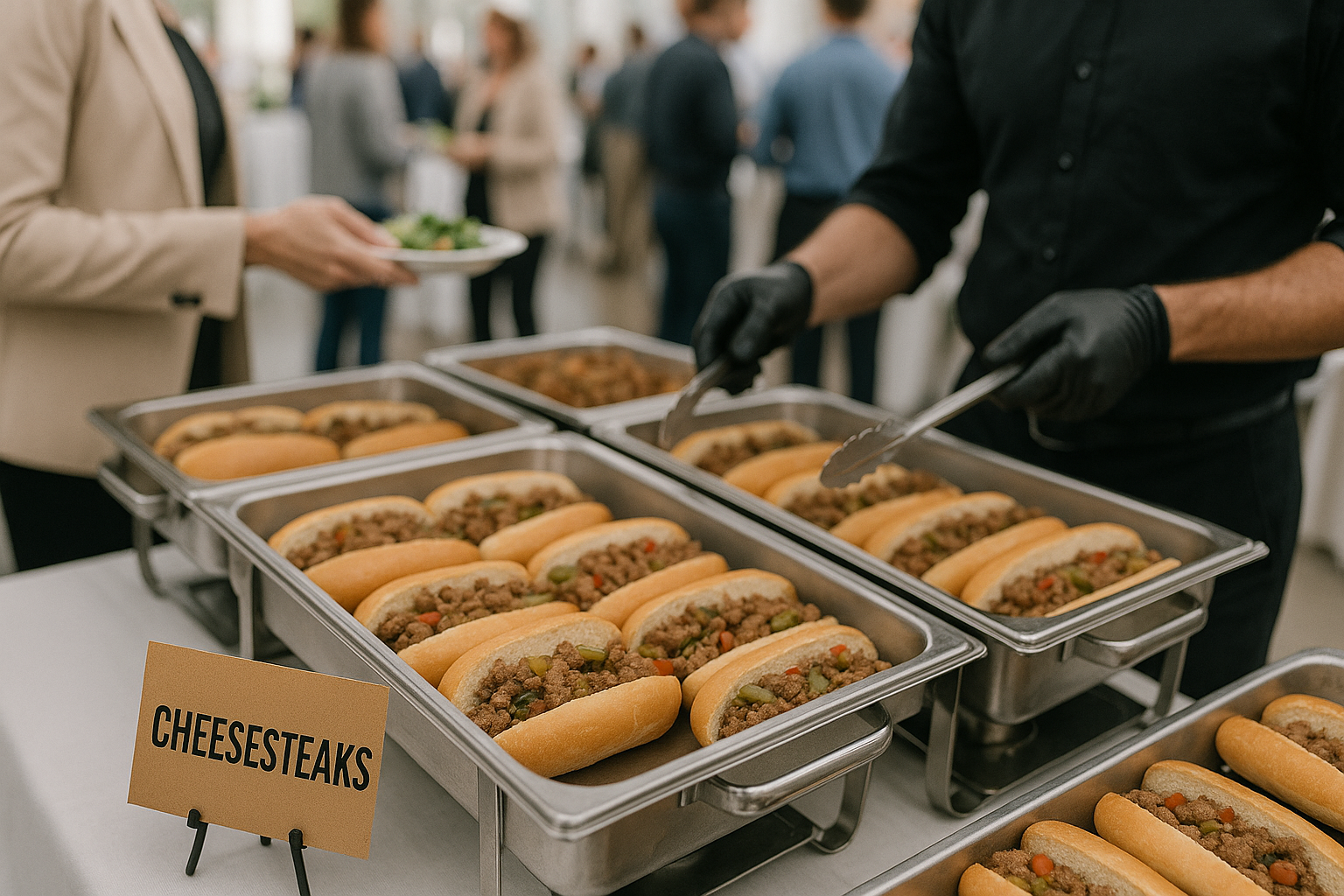 Having Chiddy’s Cheesesteaks cater your next event offers benefits like a stress-free experience, our professional expertise, courteous staff, and improved guest satisfaction. Chiddy’s professional catering will handle all the logistics, from menu planning to cleanup, which saves you time and also reduces stress for you as the host. Catering your meal from Chiddy’s Cheesesteaks ensures you’ll serve quality food, offer greater variety, as well as offer accommodation for dietary restrictions. Best of all, you, as the host, can focus as a participant on your guests to share in the good times and to ensure the success of your event. Call us today to plan your next event!